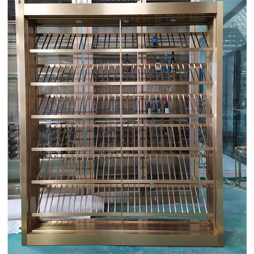 定制鈦金不銹鋼酒柜酒窖輕奢風(fēng)_不銹鋼酒柜制品生產(chǎn)廠家圖