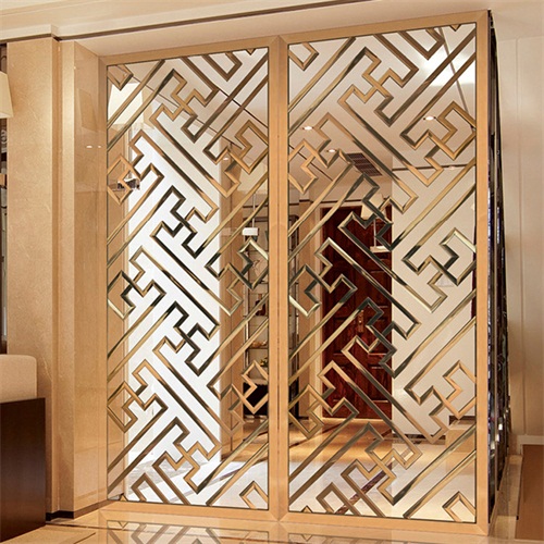 8K鏡面鈦金不銹鋼花格屏風_高檔不銹鋼屏風廠