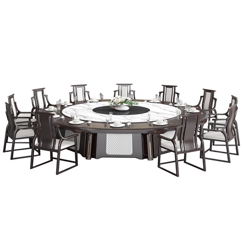 酒樓新中式巖板16人自動旋轉(zhuǎn)電動桌
