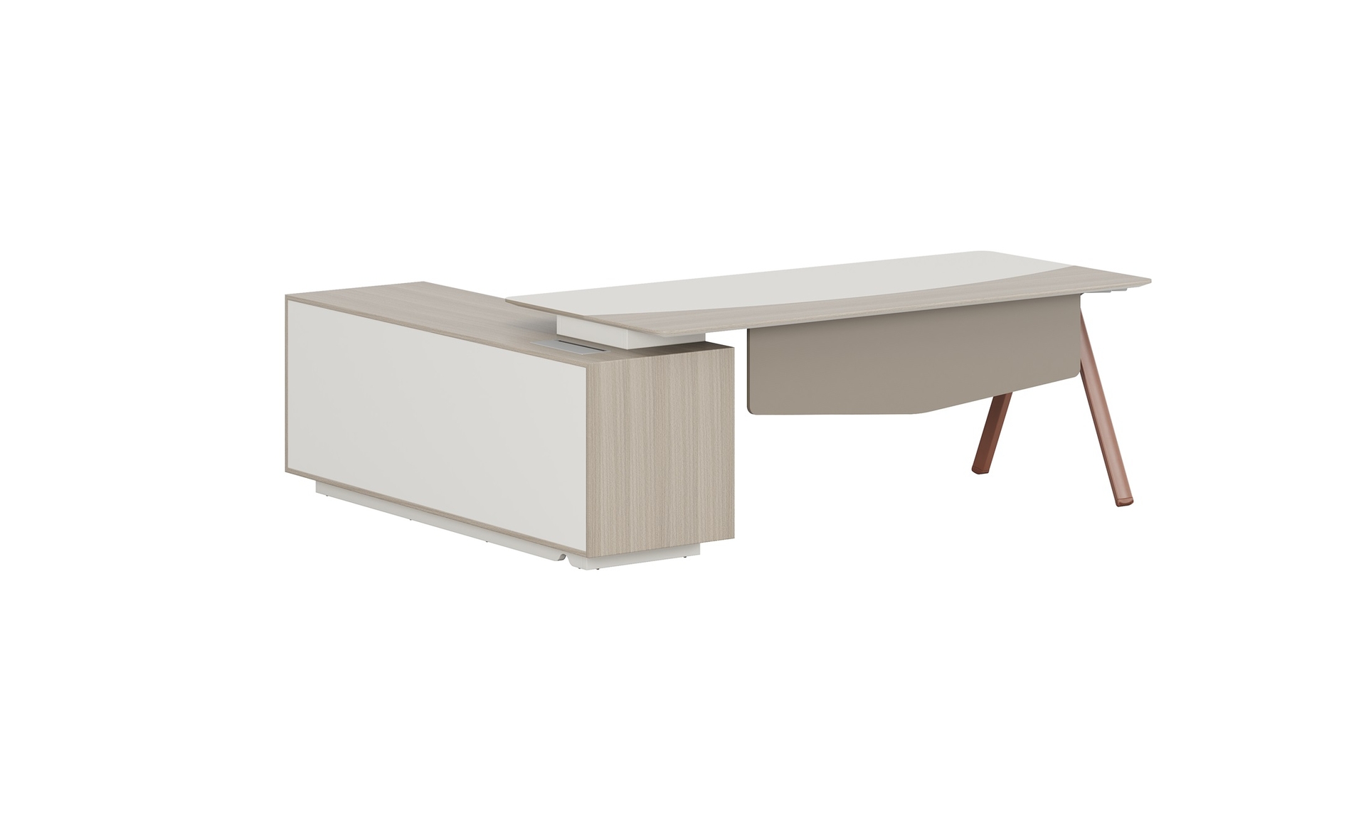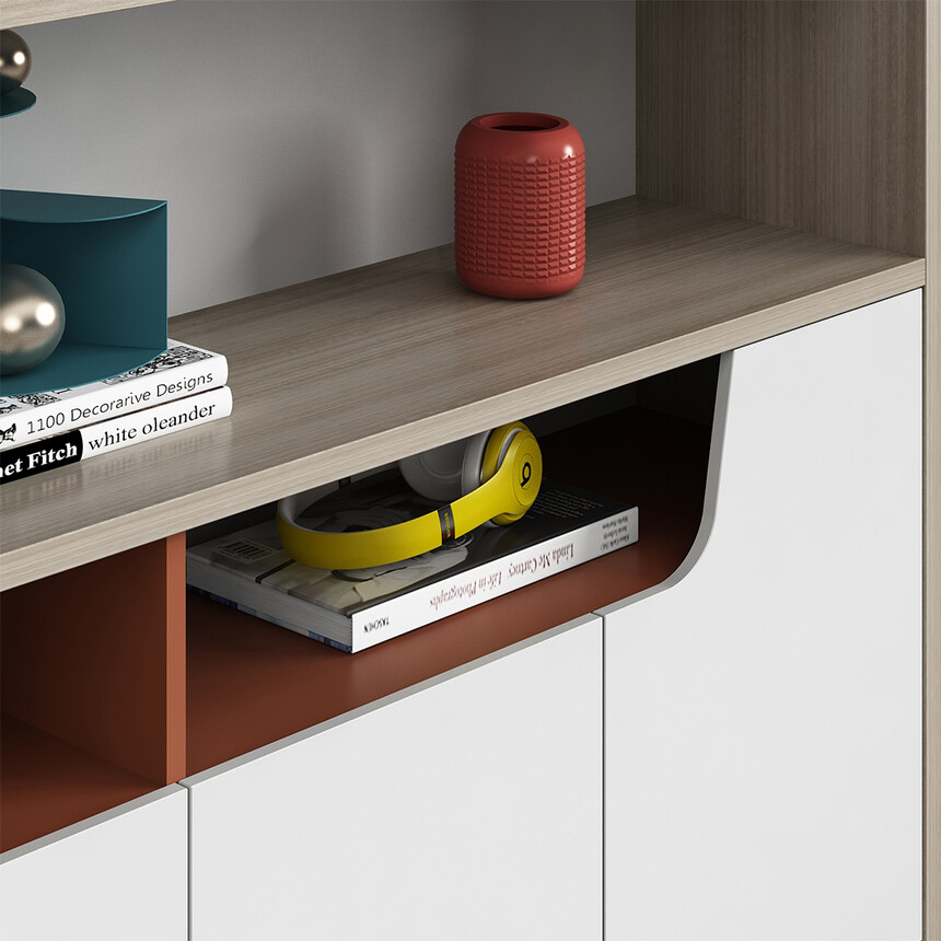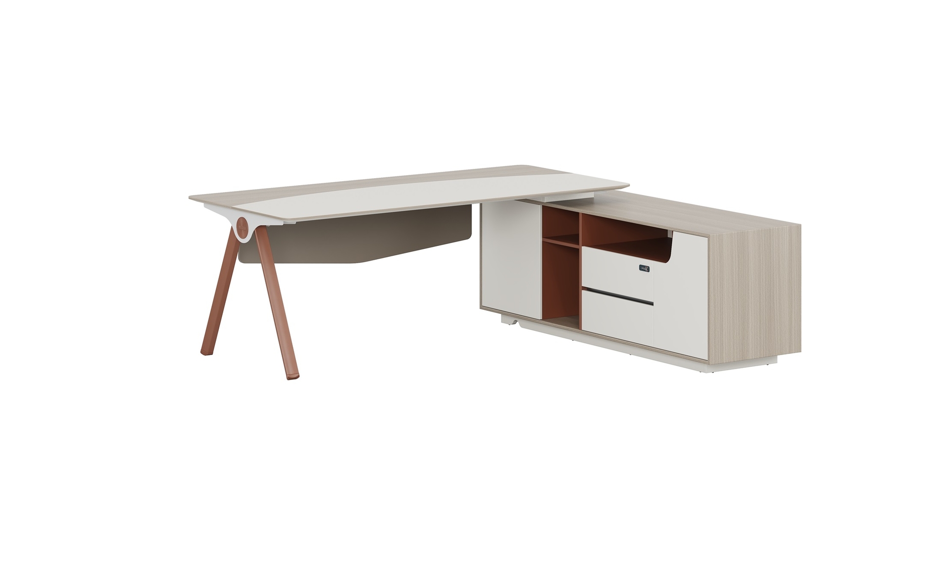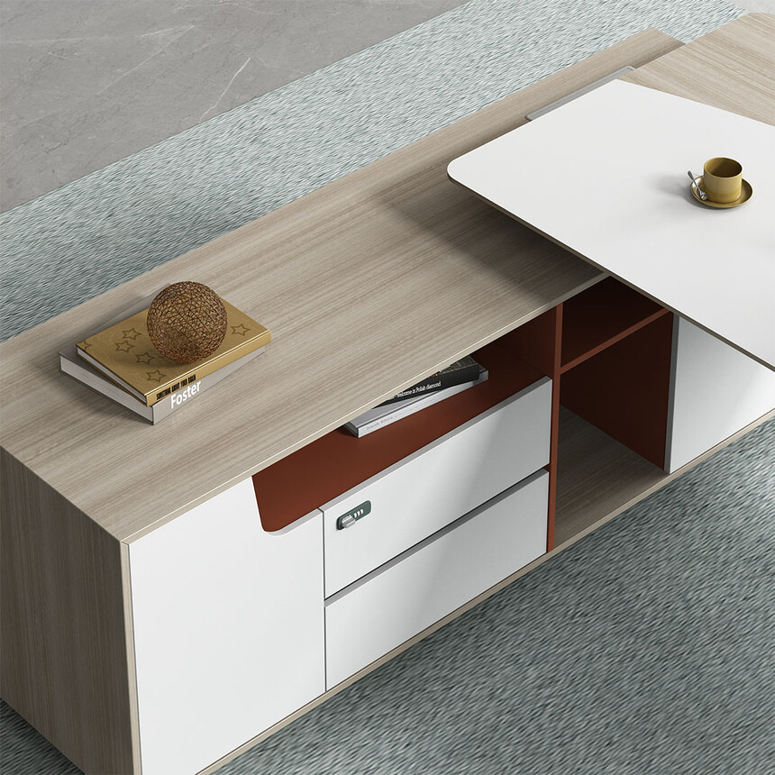 優(yōu)格又名“有格”,代表了有品格、有格調(diào)。產(chǎn)品整體以“青春、時尚、動感”為設(shè)計主題,采用了大量的弧形與直線條交叉設(shè)計,將產(chǎn)品魅力展示的淋漓盡致。在一貫沉穩(wěn)的深色辦公配色中,大膽運用了白色、卡其棕色與淺色木紋的撞色搭配,打破產(chǎn)品配色原有的嚴肅氛圍,賦予了產(chǎn)品生命力以及活力。獨特的臺腳與桌屏設(shè)計,動感十足,無不展示產(chǎn)品的細節(jié)之美。產(chǎn)品設(shè)計時尚,配置齊全,適合各種規(guī)模的辦公場所。