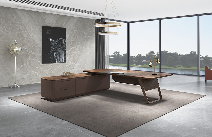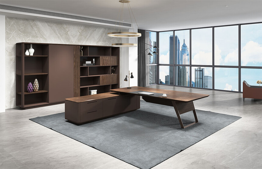 以高標(biāo)準(zhǔn)的原木質(zhì)感的油漆加持,賦予了主管桌一種沉著內(nèi)斂的特性,讓每一次商務(wù)洽談變得簡(jiǎn)單從容。