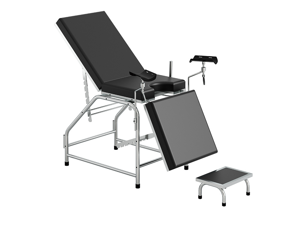 ● 配有不銹鋼托腿架、扶手,便于婦檢體位調(diào)整。